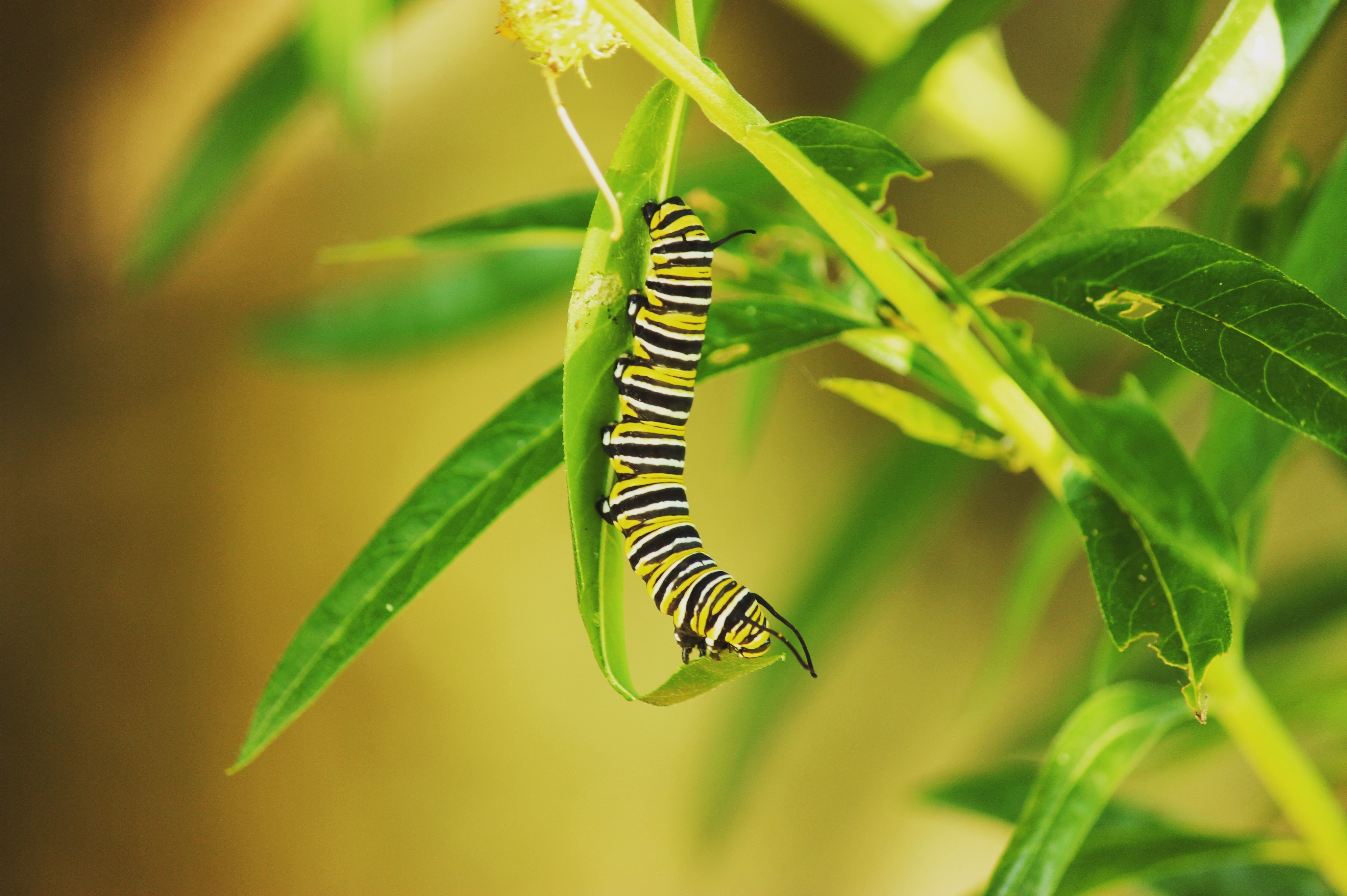 Monarchs are dependent on milkweed to lay their eggs, usually one egg on a leaf. If mistakenly laid on similar looking plants, the hatched larva will die. Surprisingly, milkweed is highly toxic, but this is a good thing for the Monarchs. The poison enters into the caterpillar and stays there through adulthood. The poison in their system makes the Monarchs toxic to predators.
